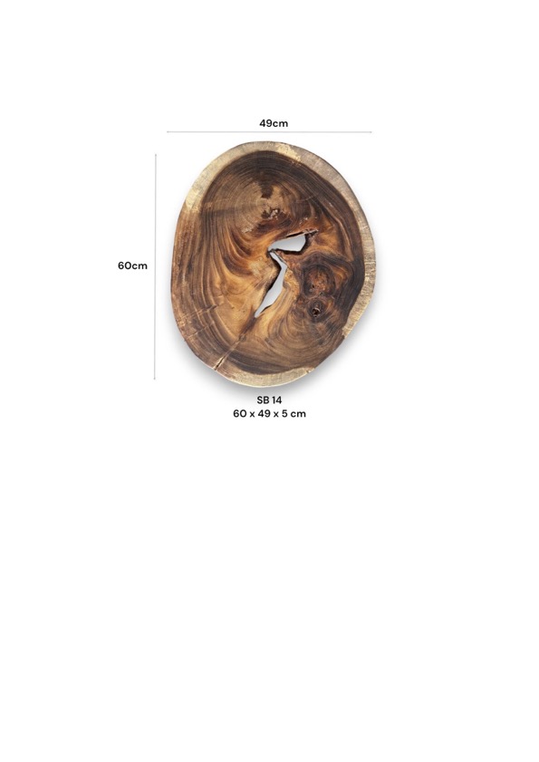 Diese exquisite Suar-Baumscheibe, gefertigt aus einem einzigen Baumstamm, besticht durch ihre einzigartige Maserung und faszinierende Farbgebung. Sie fügt sich harmonisch in verschiedenste Einrichtungsstile ein und fungiert sowohl als praktisches Möbelstück als auch als dekoratives Highlight. Jede dieser Tischplatten erzählt ihre eigene Geschichte, verleiht jedem Raum Wärme und bringt ein Stück Natur ins Zuhause.