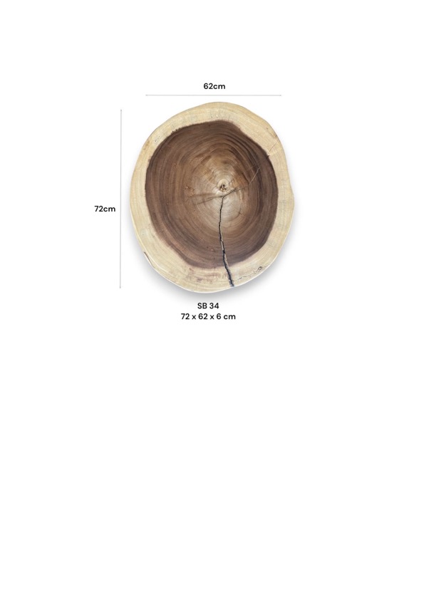 Diese exquisite Suar-Baumscheibe, gefertigt aus einem einzigen Baumstamm, besticht durch ihre einzigartige Maserung und faszinierende Farbgebung. Sie fügt sich harmonisch in verschiedenste Einrichtungsstile ein und fungiert sowohl als praktisches Möbelstück als auch als dekoratives Highlight. Jede dieser Tischplatten erzählt ihre eigene Geschichte, verleiht jedem Raum Wärme und bringt ein Stück Natur ins Zuhause.