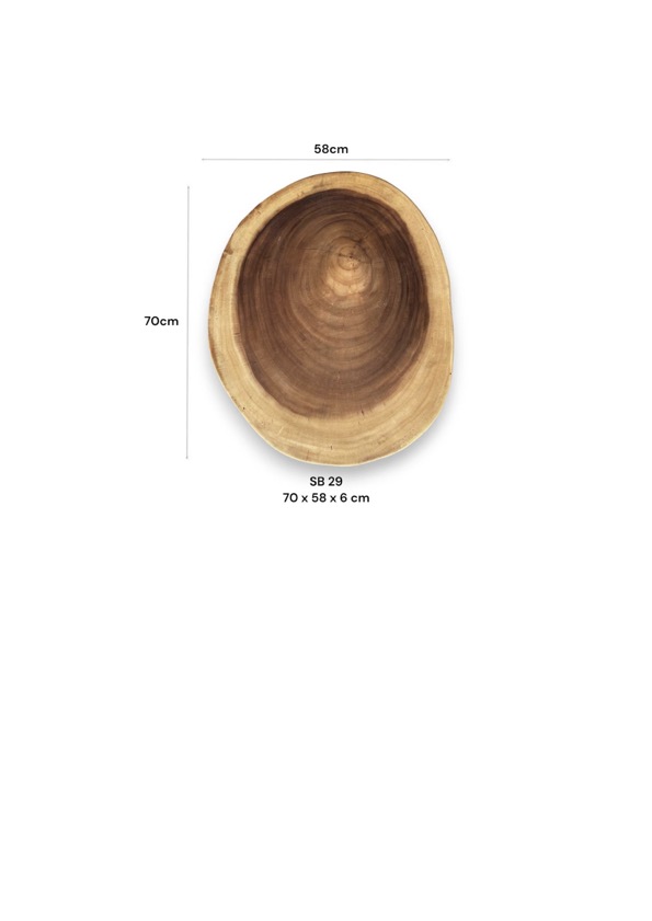 Diese exquisite Suar-Baumscheibe, gefertigt aus einem einzigen Baumstamm, besticht durch ihre einzigartige Maserung und faszinierende Farbgebung. Sie fügt sich harmonisch in verschiedenste Einrichtungsstile ein und fungiert sowohl als praktisches Möbelstück als auch als dekoratives Highlight. Jede dieser Tischplatten erzählt ihre eigene Geschichte, verleiht jedem Raum Wärme und bringt ein Stück Natur ins Zuhause.