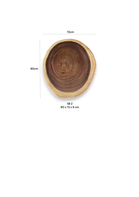 Diese exquisite Suar-Baumscheibe, gefertigt aus einem einzigen Baumstamm, besticht durch ihre einzigartige Maserung und faszinierende Farbgebung. Sie fügt sich harmonisch in verschiedenste Einrichtungsstile ein und fungiert sowohl als praktisches Möbelstück als auch als dekoratives Highlight. Jede dieser Tischplatten erzählt ihre eigene Geschichte, verleiht jedem Raum Wärme und bringt ein Stück Natur ins Zuhause.