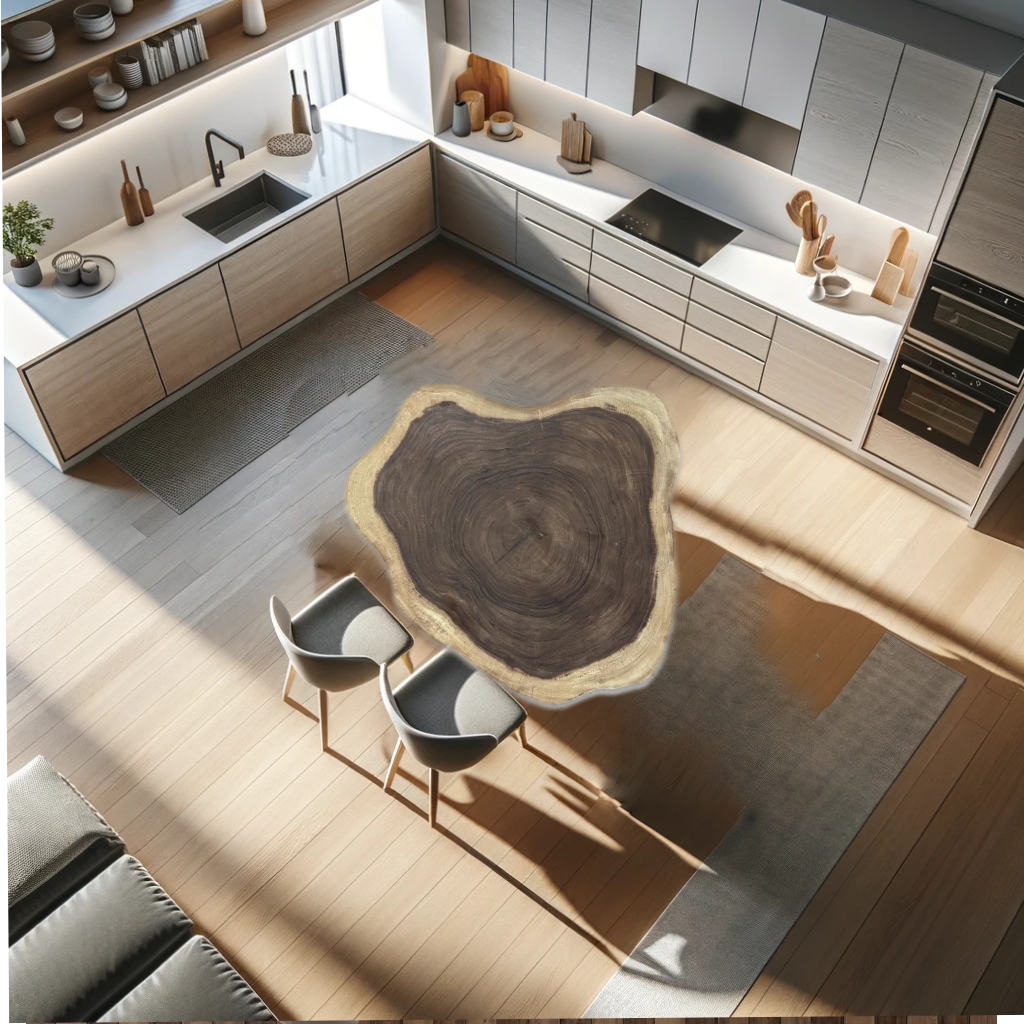Dieses kunstvolle Möbelstück steht für höchste Individualität und herausragende Handwerkskunst und setzt einen markanten Akzent in einer Welt der Massenproduktion. Natürlich gewachsen und sorgfältig verarbeitet, bringt diese Tischplatte ein Stück unverfälschter Natur in Ihr Zuhause und verkörpert unvergleichlichen Stil und Eleganz.