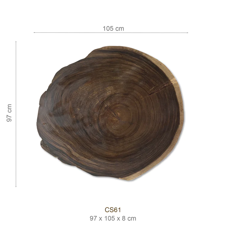 Diese exquisite Suar-Baumscheibe, gefertigt aus einem einzigen Baumstamm, besticht durch ihre einzigartige Maserung und faszinierende Farbgebung. Sie fügt sich harmonisch in verschiedenste Einrichtungsstile ein und fungiert sowohl als praktisches Möbelstück als auch als dekoratives Highlight. Jede dieser Tischplatten erzählt ihre eigene Geschichte, verleiht jedem Raum Wärme und bringt ein Stück Natur ins Zuhause.