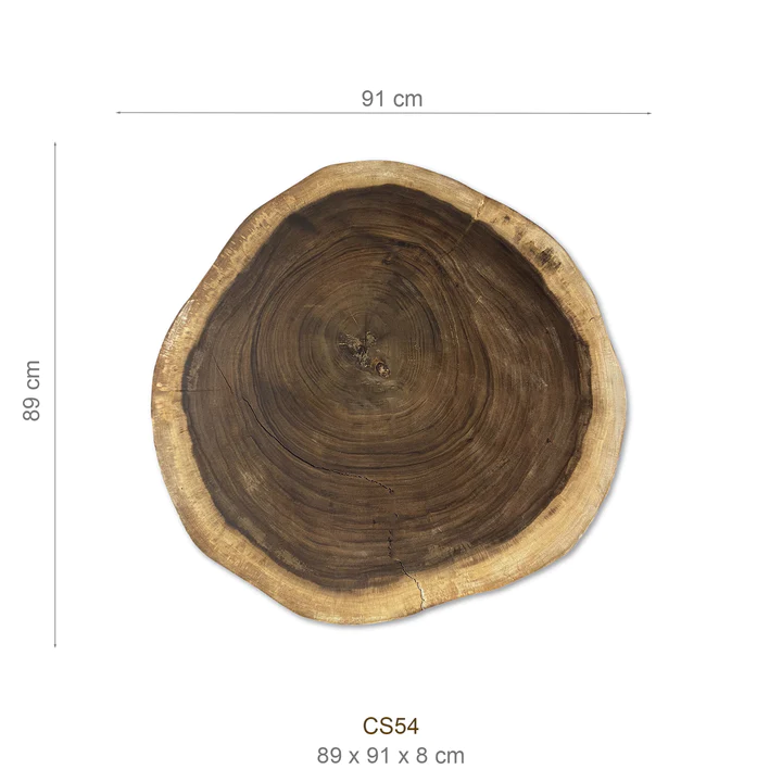 Diese exquisite Suar-Baumscheibe, gefertigt aus einem einzigen Baumstamm, besticht durch ihre einzigartige Maserung und faszinierende Farbgebung. Sie fügt sich harmonisch in verschiedenste Einrichtungsstile ein und fungiert sowohl als praktisches Möbelstück als auch als dekoratives Highlight. Jede dieser Tischplatten erzählt ihre eigene Geschichte, verleiht jedem Raum Wärme und bringt ein Stück Natur ins Zuhause.