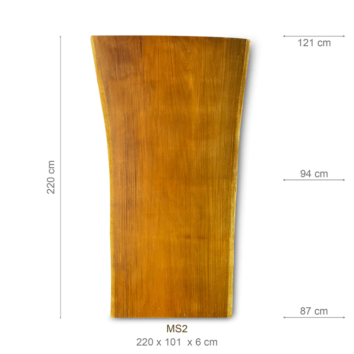 Diese exquisite Mahagoni-Tischplatte, gefertigt aus einem einzigen Baumstamm, besticht durch ihre einzigartige Maserung und faszinierende Farbgebung. Sie fügt sich harmonisch in verschiedenste Einrichtungsstile ein und fungiert sowohl als praktisches Möbelstück als auch als dekoratives Highlight. Jede dieser Tischplatten erzählt ihre eigene Geschichte, verleiht jedem Raum Wärme und bringt ein Stück Natur ins Zuhause.