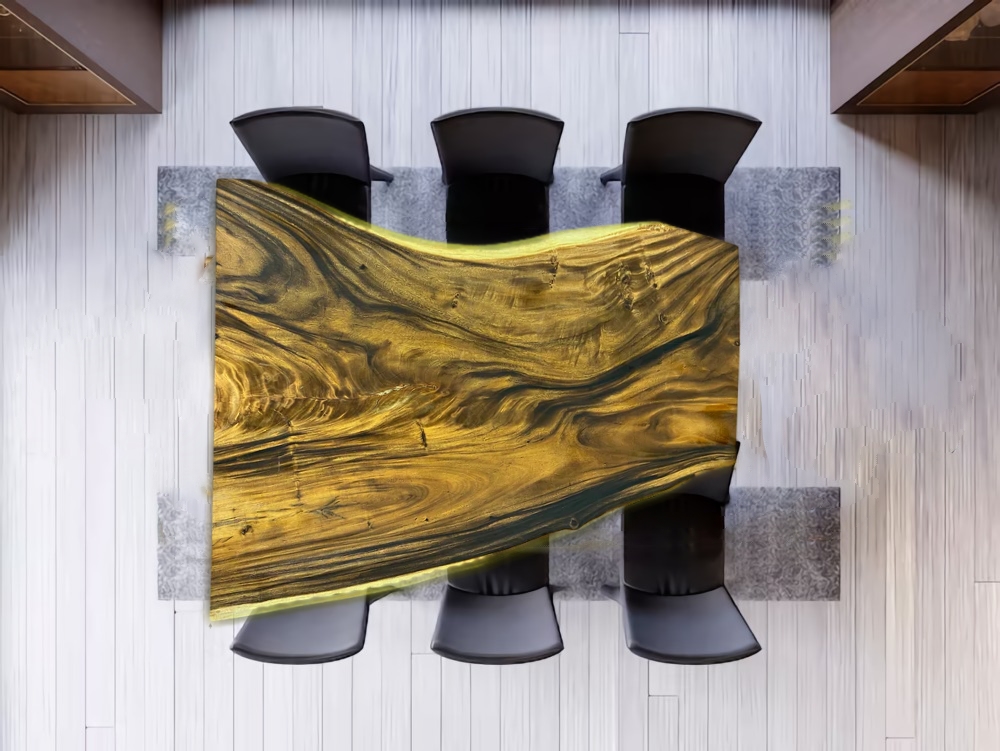 Dieses kunstvolle Möbelstück steht für höchste Individualität und herausragende Handwerkskunst und setzt einen markanten Akzent in einer Welt der Massenproduktion. Natürlich gewachsen und sorgfältig verarbeitet, bringt diese Tischplatte ein Stück unverfälschter Natur in Ihr Zuhause und verkörpert unvergleichlichen Stil und Eleganz.