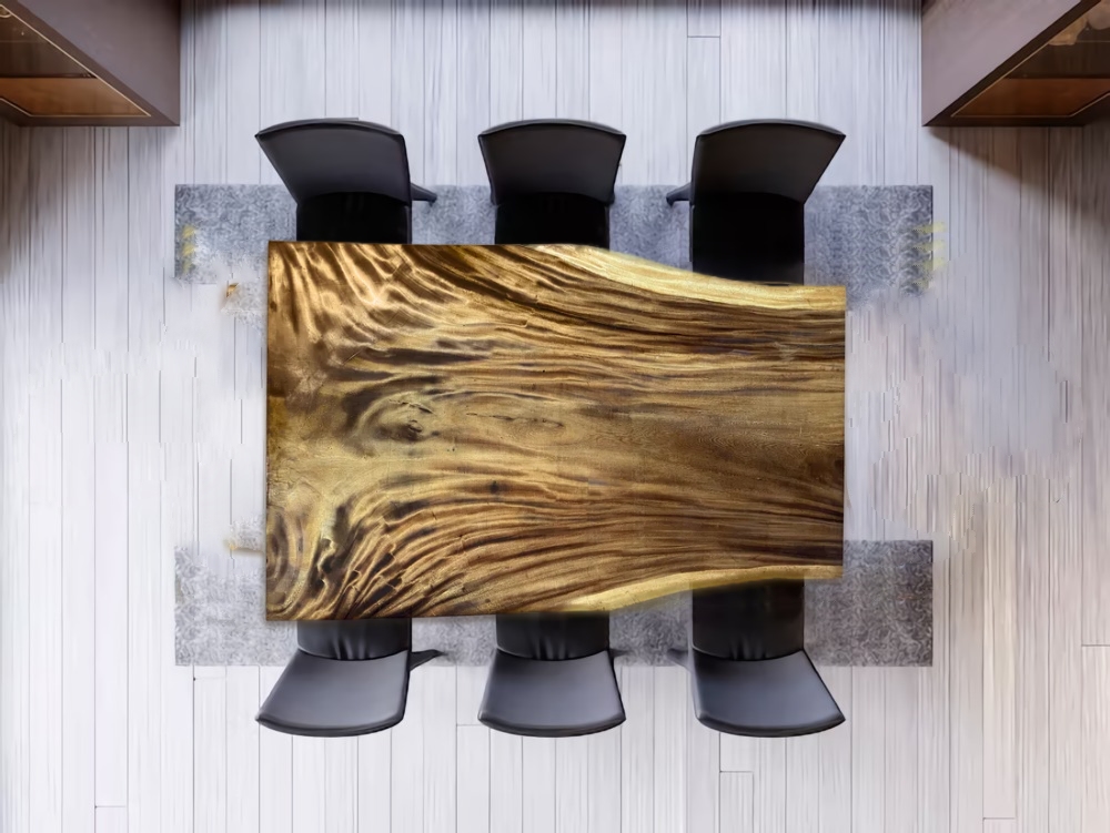 Dieses kunstvolle Möbelstück steht für höchste Individualität und herausragende Handwerkskunst und setzt einen markanten Akzent in einer Welt der Massenproduktion. Natürlich gewachsen und sorgfältig verarbeitet, bringt diese Tischplatte ein Stück unverfälschter Natur in Ihr Zuhause und verkörpert unvergleichlichen Stil und Eleganz.