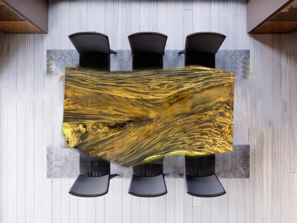 Dieses kunstvolle Möbelstück steht für höchste Individualität und herausragende Handwerkskunst und setzt einen markanten Akzent in einer Welt der Massenproduktion. Natürlich gewachsen und sorgfältig verarbeitet, bringt diese Tischplatte ein Stück unverfälschter Natur in Ihr Zuhause und verkörpert unvergleichlichen Stil und Eleganz.